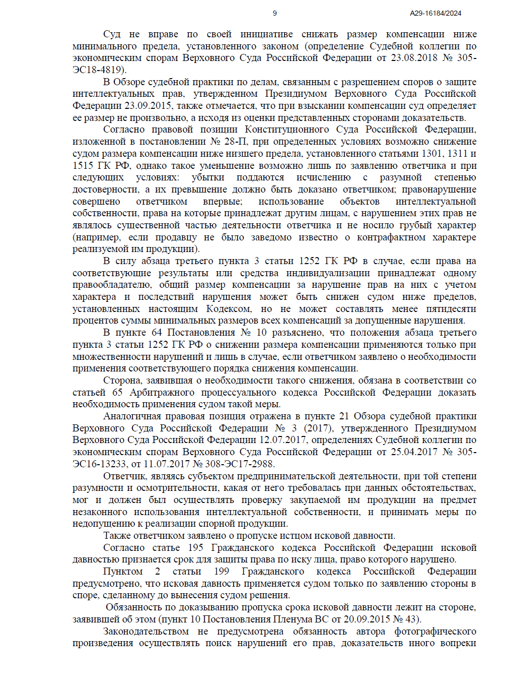 • Ответчик просил снизить компенсацию, ссылаясь на якобы низкую стоимость подобных фотографий.